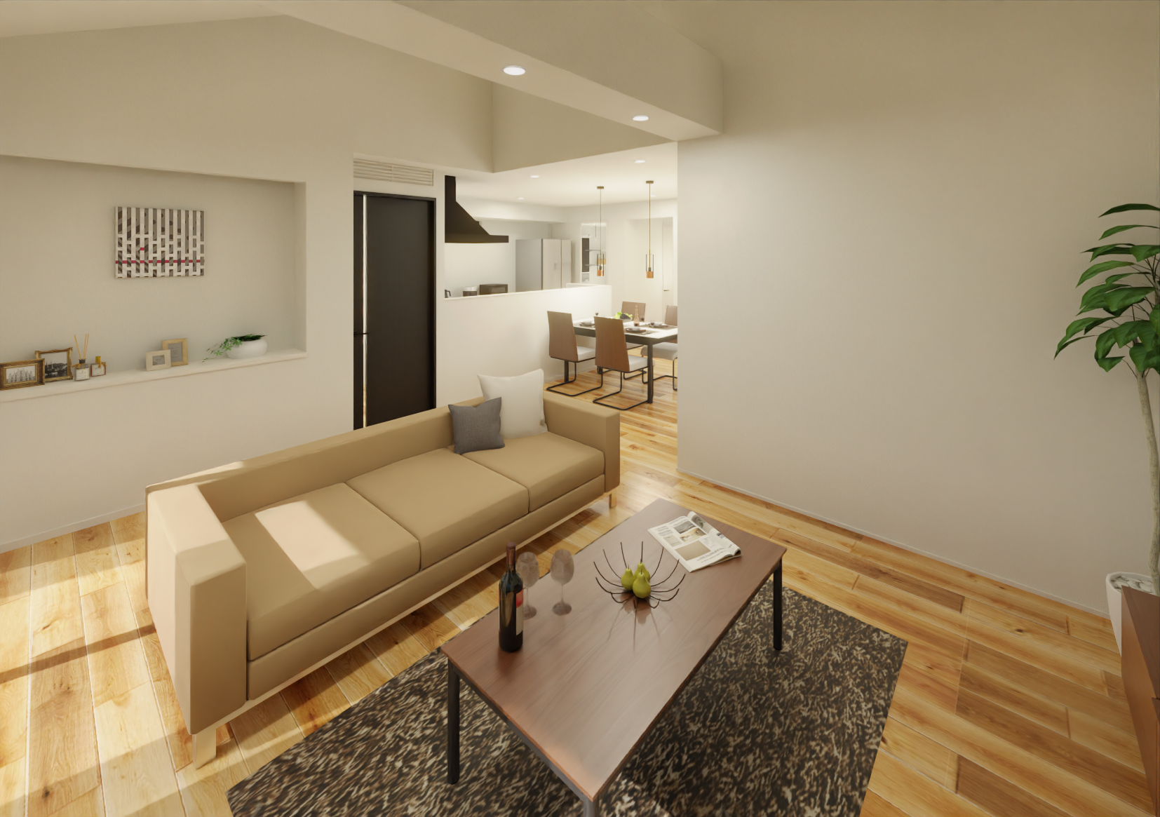 ・勾配天井と大開口で開放感が良好