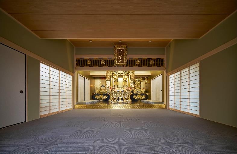 また、強靭な構造体による大開口・大空間の実現という同工法の特長を活かした明るく開放的な本堂など、
